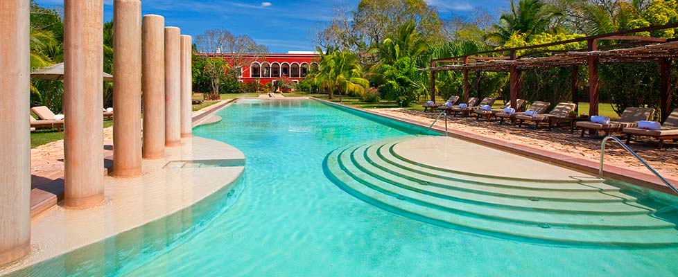 Hacienda Temozon on the Yucatan Peninsula is one of the best examples of the prosperity generated by sisal production in the 19th century in this region. Originally covering an area over 6600 hectares, it went into decline after the First World War, and was finally acquired and restored in 1996 turning the hacienda's buildings and 37 hectares of gardens into this intimate luxury colonial hacienda-styled hotel. A stay here let's you experience a piece of history whilst enjoying the nearby natural and cultural surroundings including sinkholes (cenotes), caves, colonial cities and archaeological sites.