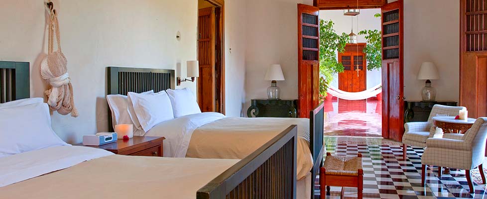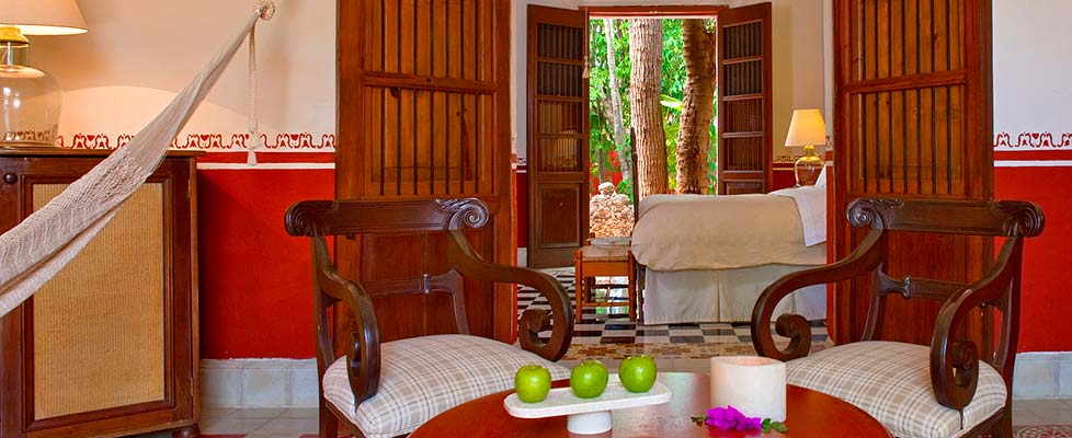 The rooms and suites have a 19th century style decor and are located in the original building that has been completely restored and adapted to meet today's luxury hotel needs. All the 28 rooms have a private terrace each. Nine of them with a private pool, and one of these also has a private garden, They are named according to the function they had in the past, such as: the Pharmacy, the School, and the Carpentry. They are approximately 45 to 55 sqm with high ceilings and spacious bathrooms. You will also find a hammock in each should they prefer to sleep in the Mayan style.